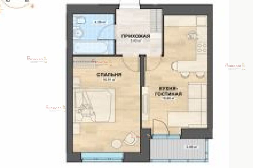 Планировка: Кухня-гостиная (просторное общее пространство) + отдельная спальня.