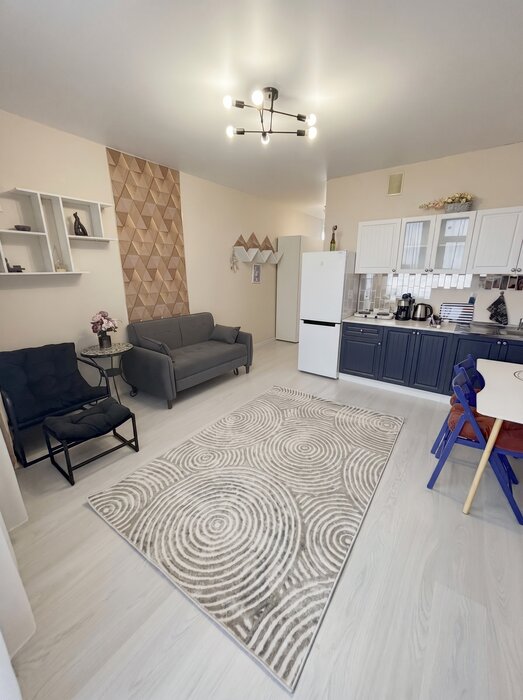 Площадь квартиры — 28 м², но пространство организовано очень грамотно, поэтому квартира ощущается комфортной и просторной.