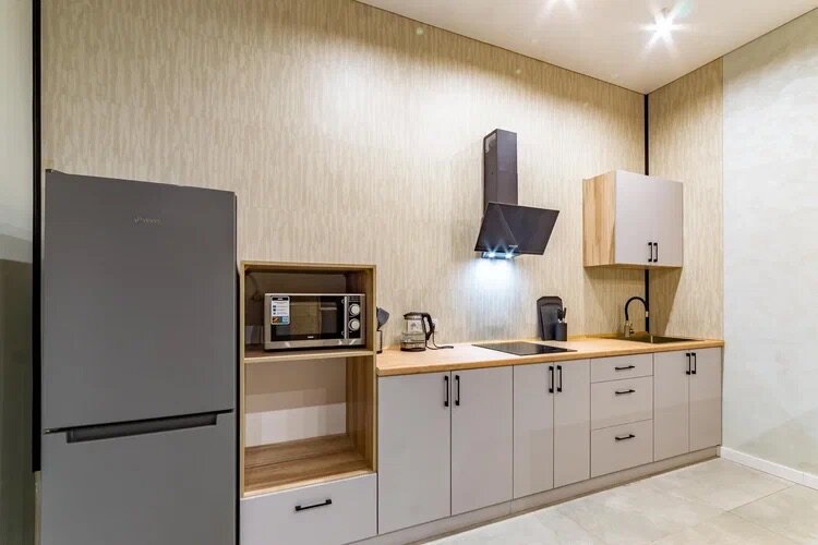 - Микроволновая печь, плита, холодильник