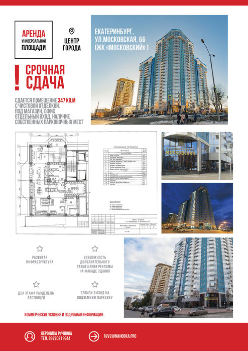 Выгодная локация для вашего бизнеса в новом жилом комплексе "Дом на Ясной".Ищем оарендатора на коммерческую площадь, 1 этаж, отдельный вход, в престижном новострое "Дом на Ясной" (Ленинский район, Екатеринбург).Идеально подойдет как под салон красоты, торговое помещение, пункт выдачи, магазин цветов, кафе, кофейня и т.д. О комплексе:• Современный 4-секционный жилой дом комфорт-класса (2 370 квартир, 4 360 жителей).• Выгодное стартовое положение: Откройтесь в самом начале формирования торговой зоны нового квартала.• Огромный потенциал: Обслуживайте жильцов комплексов и посетителей парка.Перекресток с высокой проходимостью и развитой инфраструктурой обеспечит вашему бизнесу стабильный поток клиентов.Идеальная локация для успеха:• Перекресток ключевых улиц: Ясная, Шаумяна, Волгоградская, Громова.• Отличная транспортная доступность в центр и к Объездной дороге.• Центр притяжения: Рядом – жилой комплекс комфорт-класса "Миллениум"• Бурно развивающаяся инфраструктура: Первые этажи займут магазины, кафе и сервисы, создавая поток клиентов и удобство для жителей. Станьте частью этого востребованного коммерческого кластера!Мощное окружение:• Семейный контингент: Детский сад №233 во дворе, гимназии, лицей, школа олимпийского резерва с бассейном – гарантированный поток родителей и детей.• Здоровье рядом: Городская многопрофильная клиника (стационар, поликлиники) в шаговой доступности.• Отдых и спорт: Прямо через дорогу – огромный парк им. 50-летия ВЛКСМ, который ждет масштабное обновление (спортплощадки, скейтпарк, беговые дорожки, зоны отдыха, современные детские комплексы). Ваш бизнес – на пути к парку!• Комфортная среда: Просторный двор комплекса (2,8 Га) с озеленением, детскими и спортивными площадками, зонами отдыха.Не упустите шанс открыть успешный бизнес в самом сердце развивающегося района!