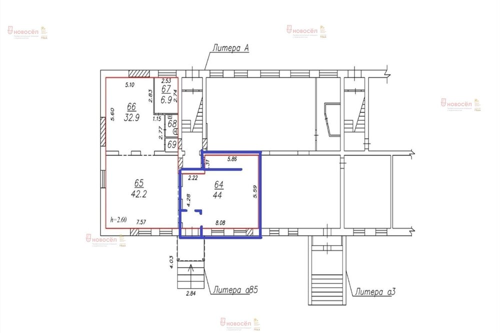 Площадь 44 кв. м.
