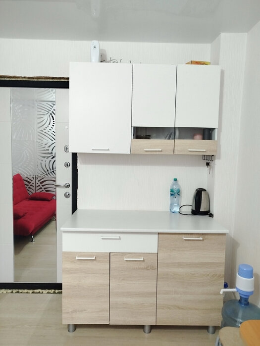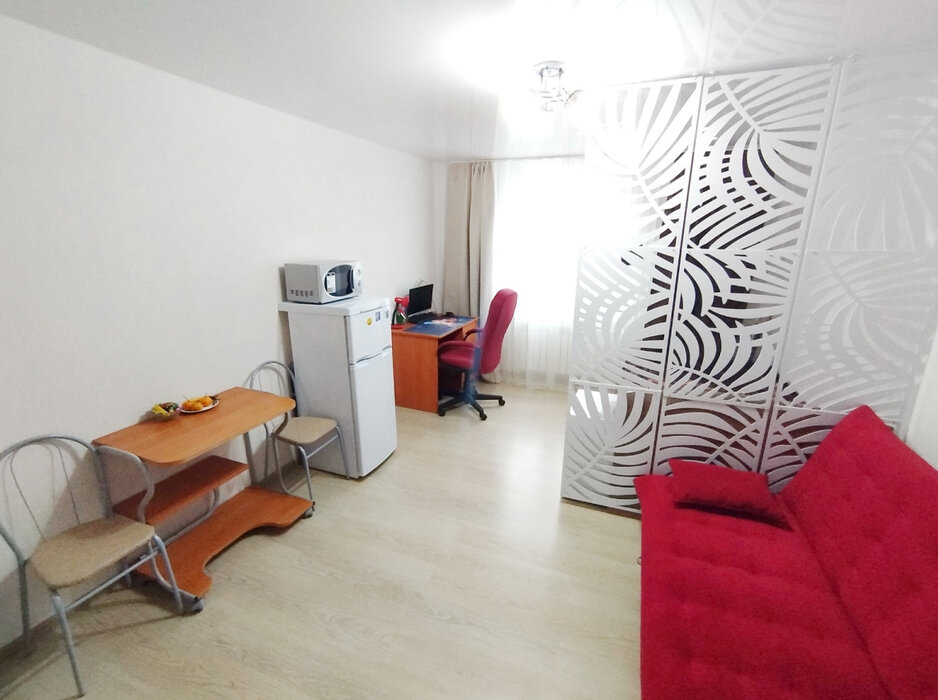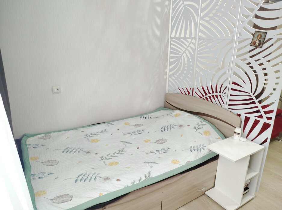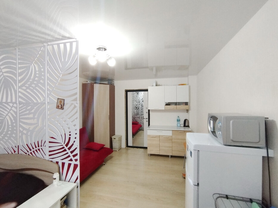 В комнате сделан современный ремонт. Установлены: новая качественная сейф-дверь, натяжной потолок, современный радиатор отопления, пластиковый стеклопакет, ламинат. Вся мебель, кухонный гарнитур - новые.