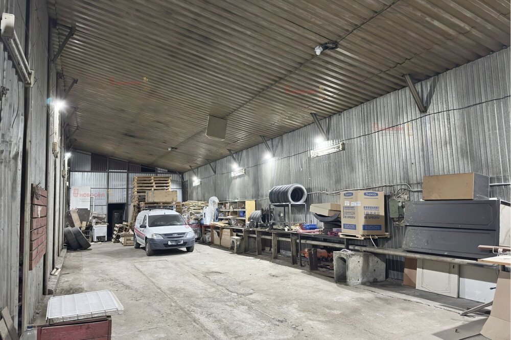 Характеристики: площадь 1800 м². Высота потолка до фермы: 7,25 м. 3 грузовых ворот 3×3 м, 2 ворот 4,5×4,5 м (вывод в ноль). 5 дверей. Пол - бетонная плита с армированной сеткой, нагрузка 5 т на кв.м, антипыль.