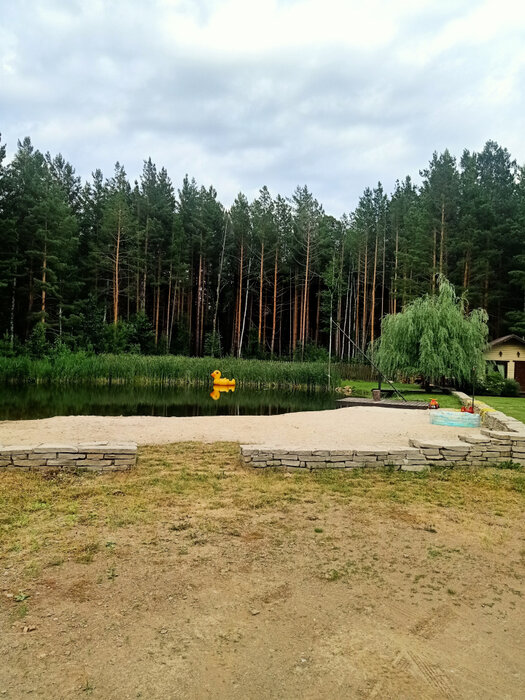 Здесь царит гармония во всем! Особый шарм нашему поселку придают окружающий его сосновый лес и собственные водоемы. Здесь глубина достигает 6 метров, а в чистой воде можно разводить рыбу. Вы только представьте: раннее утро, место рыбалки в зоне видимости с крыльца Вашего дома! А еще и баня на берегу! Территория поселка окружена забором, оснащена автоматическими воротами.