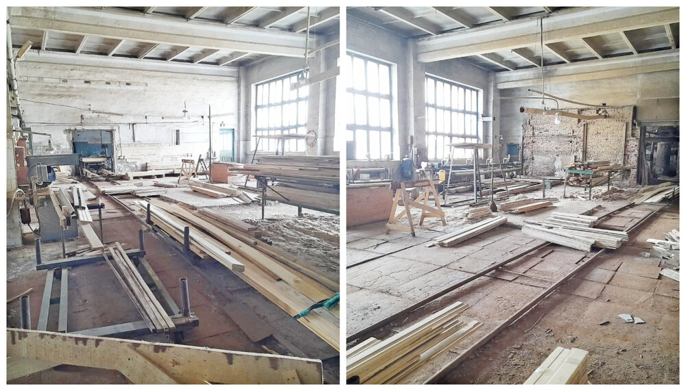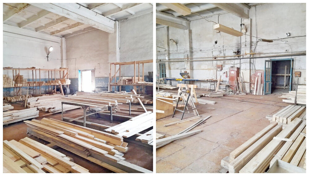 В настоящее время использовалось как деревообрабатывающий цех (есть станки и оборудование). Общая площадь здания - 2325.1 кв. м. Автогараж для грузовых машин - 74 кв. м. с высотой ворот - 5м.1974 года постройки.