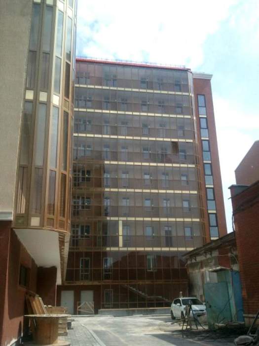 апартаменты в строящемся здании, большой застекленный балкон, объект в стадии сдачи