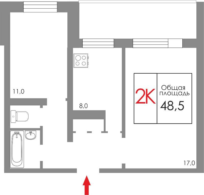 Общая площадь:48 м2