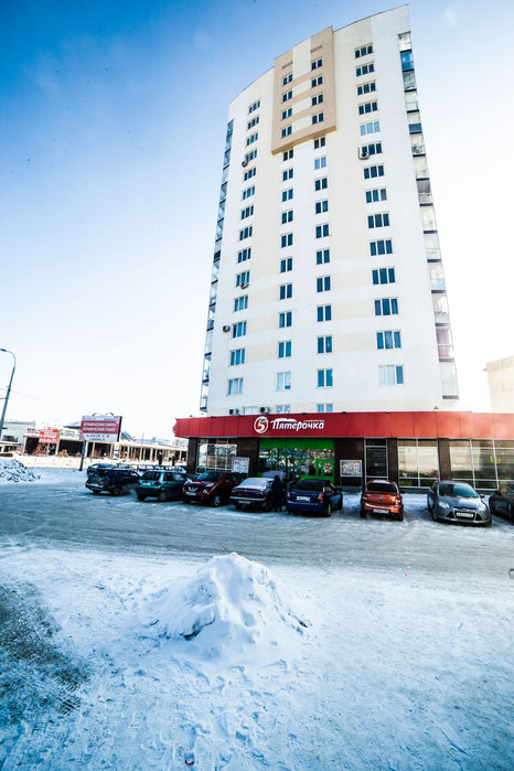 Прямо в доме расположен магазин Пятерочка, напротив, через дорогу ТРЦ Глобус.