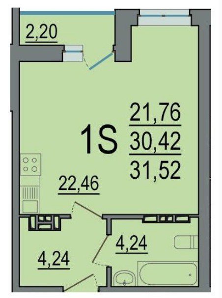 Общая площадь:31.52 м2
