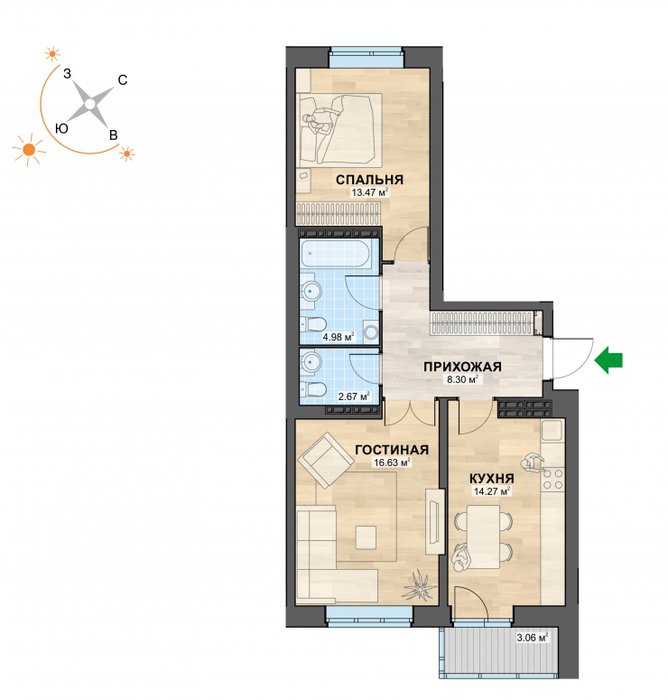 Общая площадь:63 м2