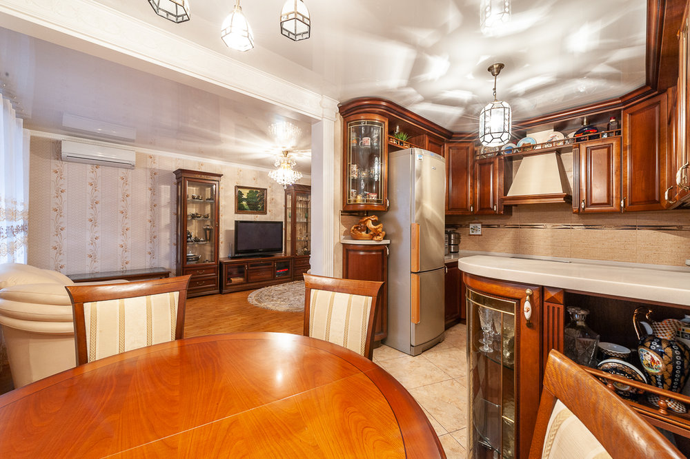 В квартире сделан дорогой капитальный ремонт в стиле классицизм, а интерьерные решения добавляют элементы колониального стиля, благодаря чему в квартире очень уютная атмосфера и комфортное жизненное пространство.