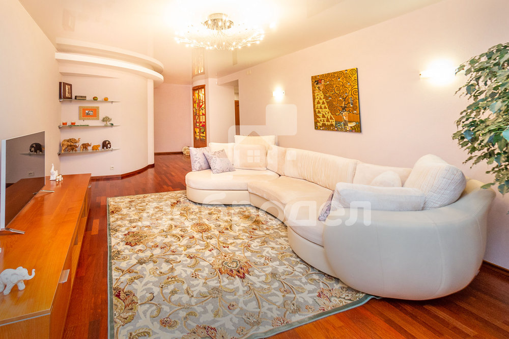 Шикарная гостиная площадью 23,2 м2 отлично подойдет для семейного общения. Потолок натяжной, стены обои под покраску, паркет, остается кондиционер "Daikin" Япония, из окна открывается прекрасный вид на восток, на центр города, набережную реки "Исеть", Макаровский мост и Храм на крови.