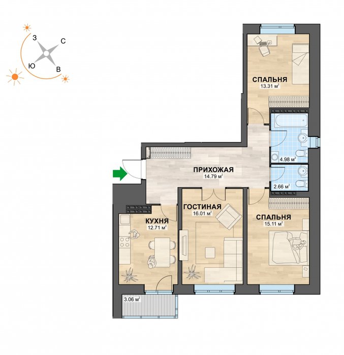 Екатеринбург, ул. Сосновый, 14 (Уралмаш) - фото квартиры 1 мая 2025 90 дн. 2 66.5 16/25 8 700 000