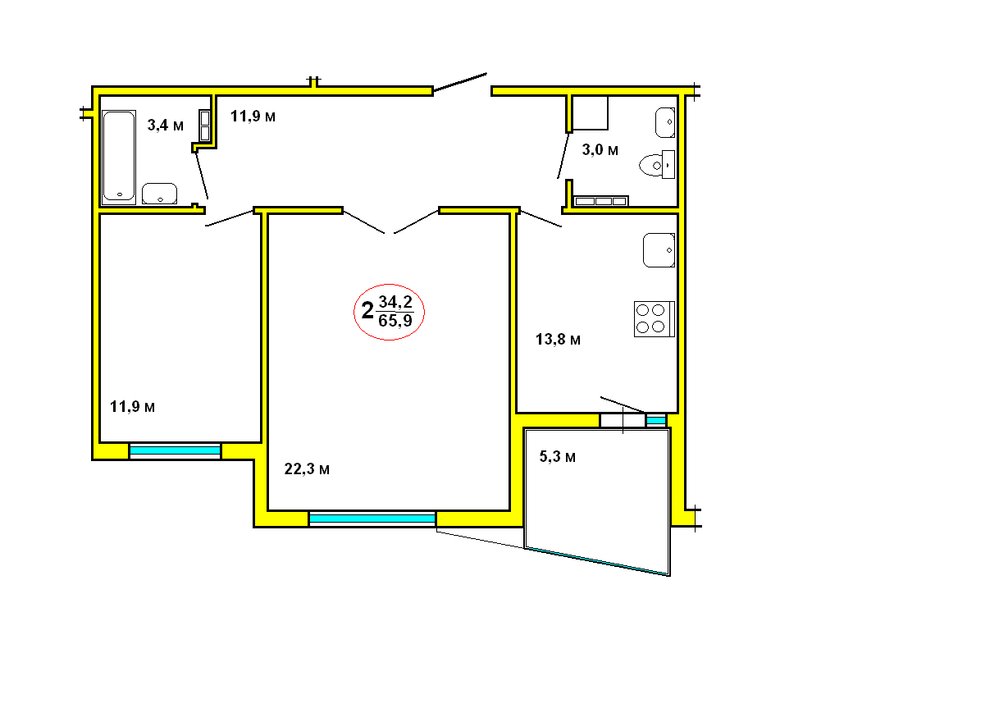 Екатеринбург, ул. Космонавтов, 90 - фото квартиры 24 февраля 2020 90 дн. 0 30.9 1/5 2 199 000