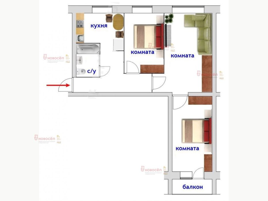 1. Продуманной планировкой: просторная, светлая гостиная позволит Вам удачно расположить мебель. Изолированные спальные комнаты уютные и комфортные площадью 12 м2, 10 м2. Просторная кухня. Совмещенный санузел. Широкий коридор.