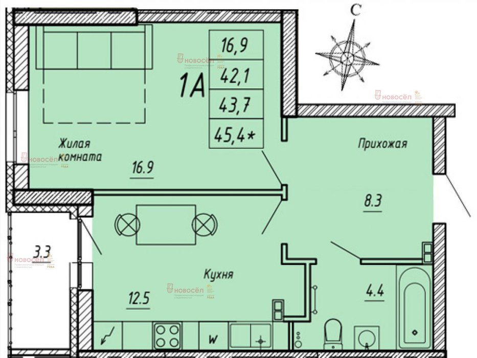 Объект № 105823. Срочно! Продам по уступке однокомнатную квартиру 45 кв.м. в ЖК На Мостовой (ул. Мостовая-Предельная), у застройщика таких квартир уже нет.
