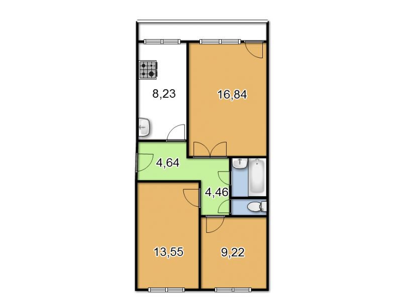 Объект № 106902. Квартира с отличной планировкой. Окна на разные стороны. Дом малонаселенный, всего две квартиры на этаже, поэтому в подъезде чистота и порядок. Тихий двор с детской площадкой, всегда есть парковочные места. ***Гарантийный сертификат «Защита собственности» по данному объекту в подарок***
