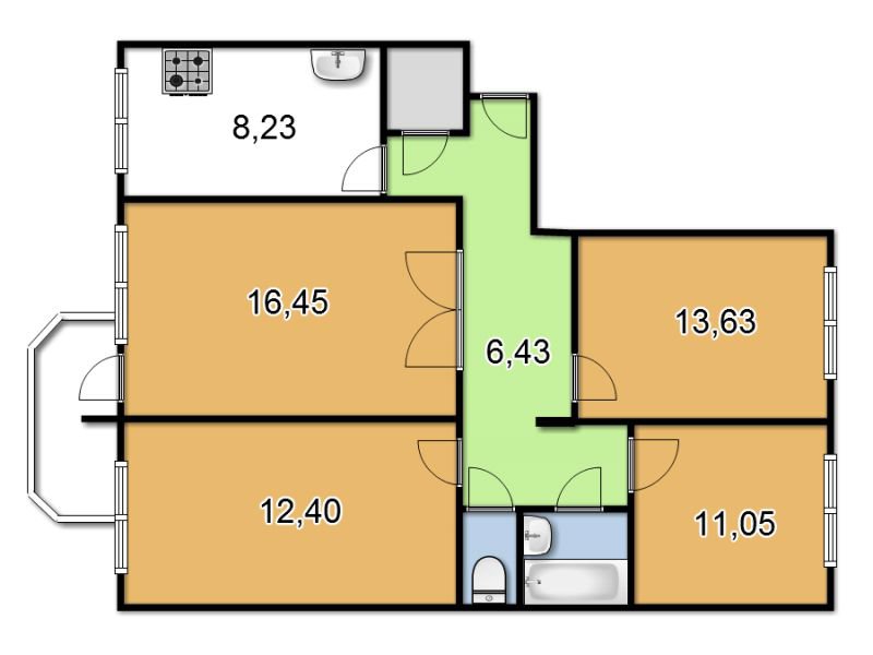 Общая площадь:78.1 м2