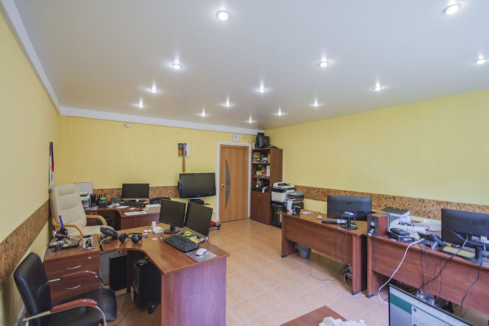 Площадь комнаты- 28,4 м2, площадь кухни-гостиной 23м2. Сейчас квартира используется в качестве офиса, однако ее легко превратить в комфортную евродвушку.
