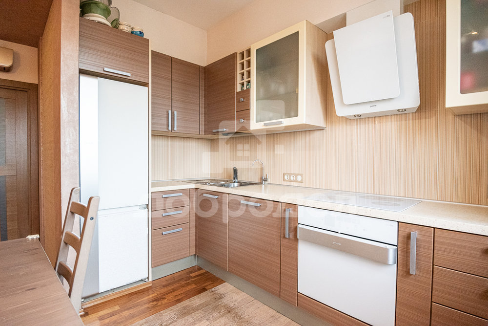 Кухня со встроенной техникой выполнена по спецзаказу: варочная поверхность, вытяжка, холодильник, плита фирмы Gorenje, посудомоечная машина фирмы Bosh. Все есть для комфортной жизни. Заезжай и живи!