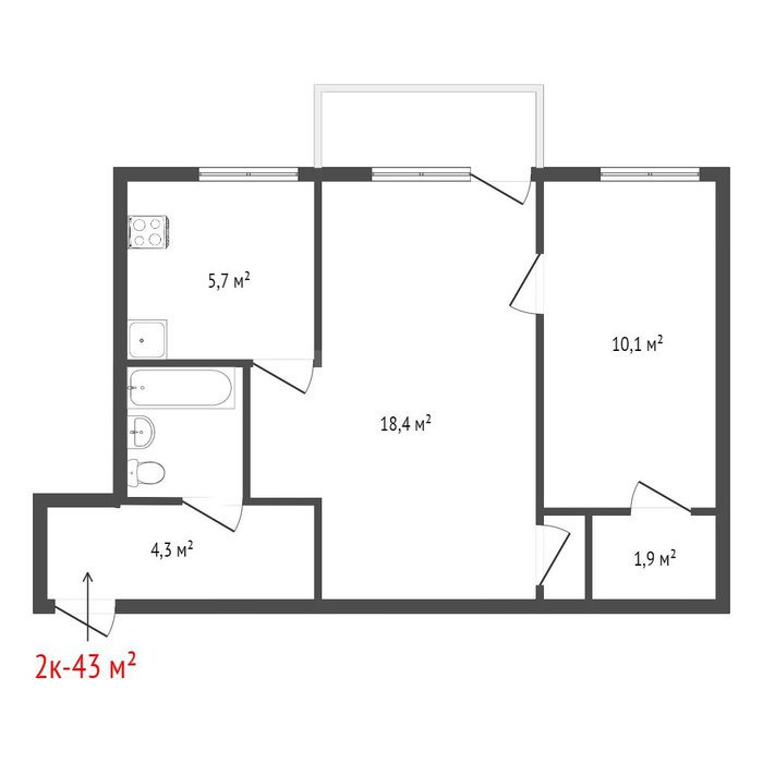 Общая площадь:43 м2