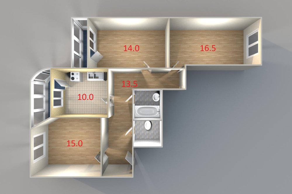 • 3-к квартира, Авиаторов, 14