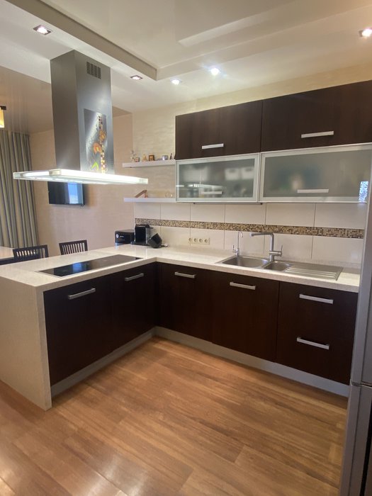 В квартире остается кухонный гарнитур со встроенной бытовой техникой (духовой шкаф, варочная поверхность, вытяжка, посудомойка и т.д.), вместительные шкафы- купе в комнатах и лоджии.