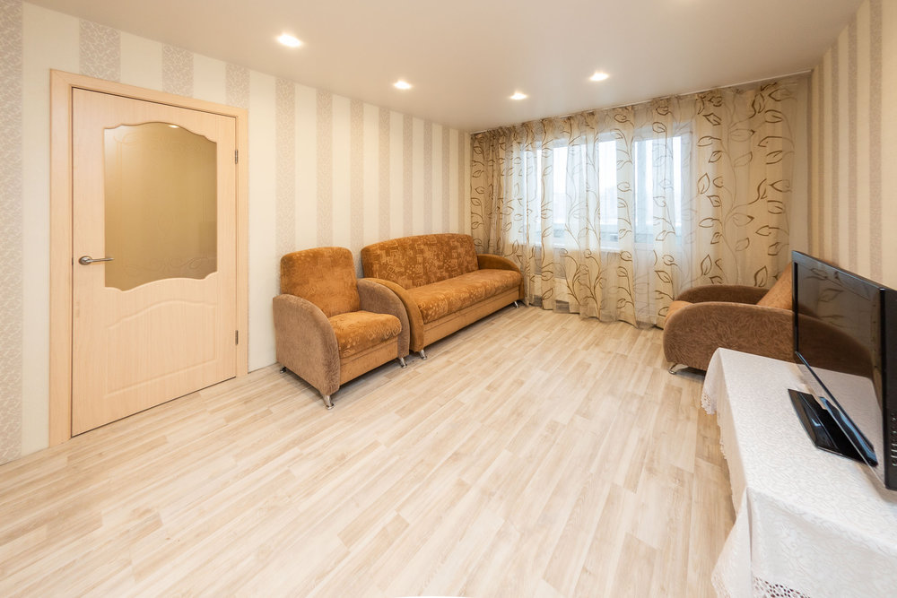Ремонт сделан капитальный, замен электропроводки, замена полов, труб. Красивый вид их окна.