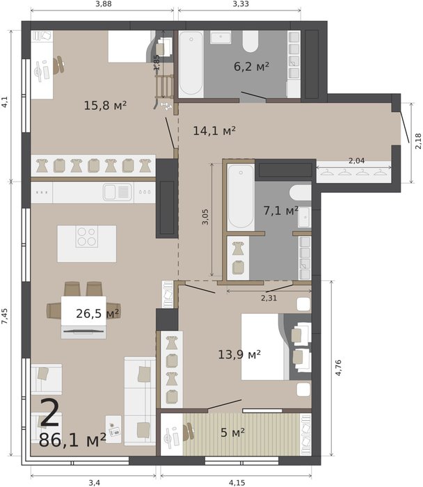 Екатеринбург, ул. Ленина, 2, Клубный дом "Ленина, 8" (Принцип) (Дом 3) (Центр) - фото квартиры 20 февраля 2023 60 дн. 5 162 8/20 43 740 000
