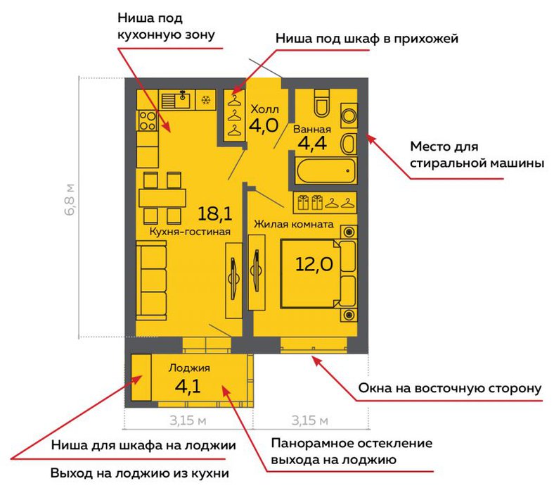 Площадь кухни:18.1 м2