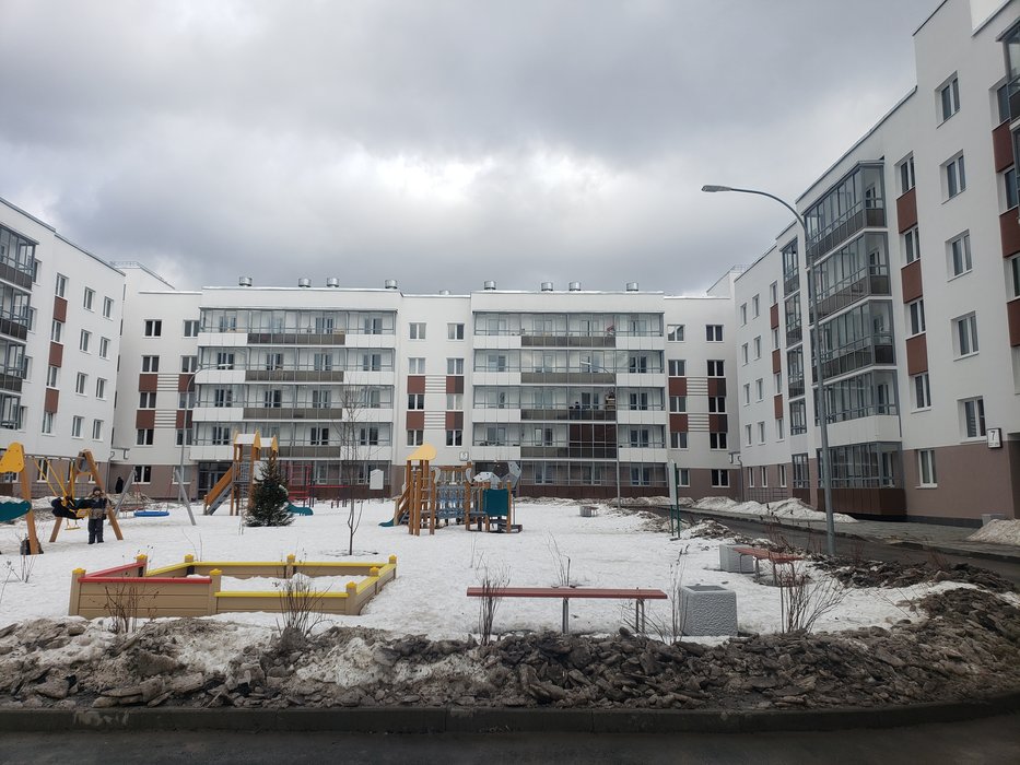 - На территории выполняется благоустройство: озеленение, установка игровых городков и уличных тренажеров, прокладка пешеходных и велодорожек.