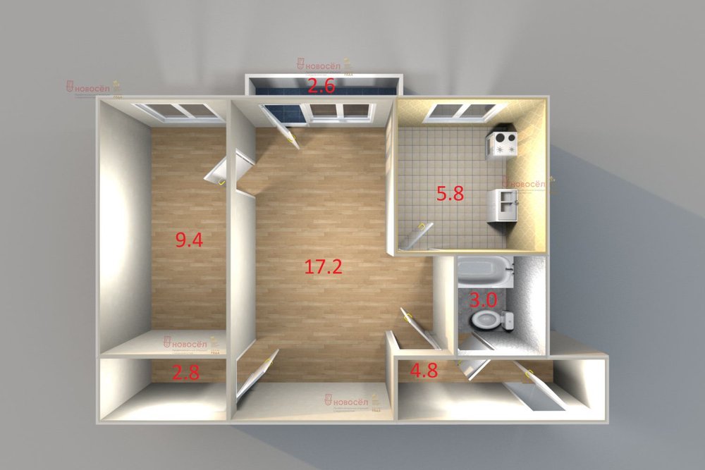 Общая площадь:43 м2