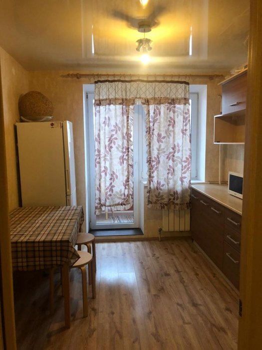 В квартире большая прихожая, установлен шкаф-купе. Кухня с выходом на лоджию. Кухонный гарнитур и встроенная техника остаются. Комната просторная и правильной формы. Большой санузел.