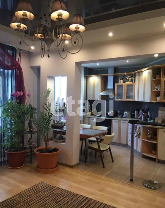 Объединенная кухня-гостиная 29,4 м2. В коридоре вместительная гардеробная и шкаф (Икея), в кладовой металлический стеллаж. Остается кухонный гарнитур с варочной поверхностью, вытяжкой и посудомоечная машина, два кондиционера (в гостиной и спальне), корпусная мебель в спальне и детских остается полностью.