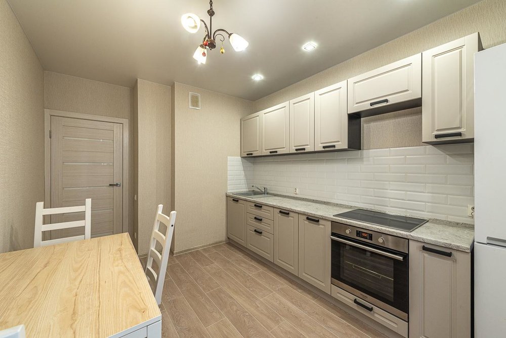 - кухня оборудована гарнитором и техникой: кухня HOFF Mokka с антивандальными фасадами, новая встраиваемая техника hotpoint ariston и Gorenje