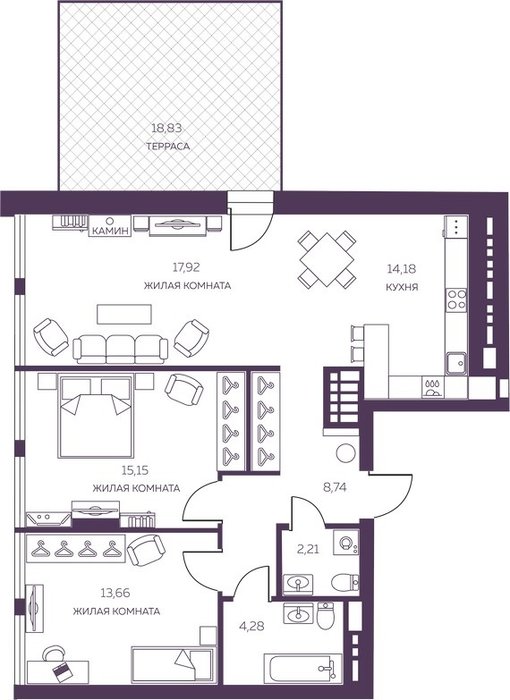 КВАРТИРА С ОТДЕЛКОЙ, КАМИНОМ И ТЕРРАСОЙ!