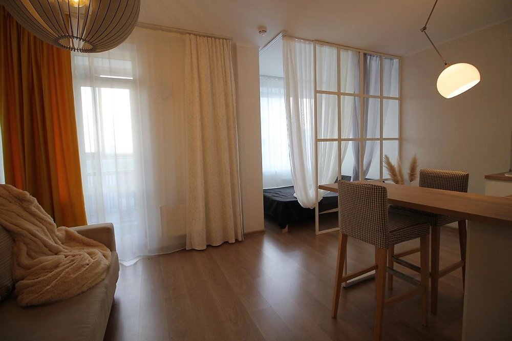 Функциональная планировка: кухня-гостиная, комната, просторный сан.узел. Счетчики ХВС и ГВС, двухтарифный электросчетчик, теплосчетчик.