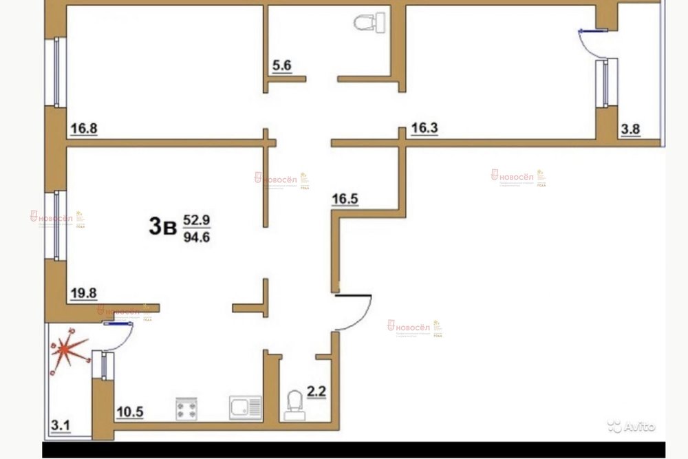 Объект № 193113. Продаём 3-комнатную квартиру в кирпичном доме. Отличная локация - рядом есть всё, что нужно: магазины, остановка общественного транспорта, поликлиника. Тихий двор, всегда в наличии парковочные места. Один взрослый собственник, быстрый выход на сделку. ***Гарантийный сертификат «Защита собственности» по данному объекту в подарок***