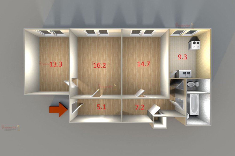 Количество комнат:3