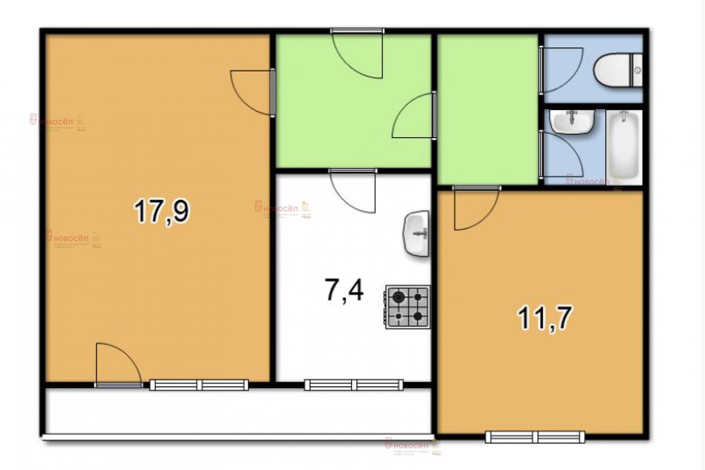 • 2-к квартира, Агрономическая, 43