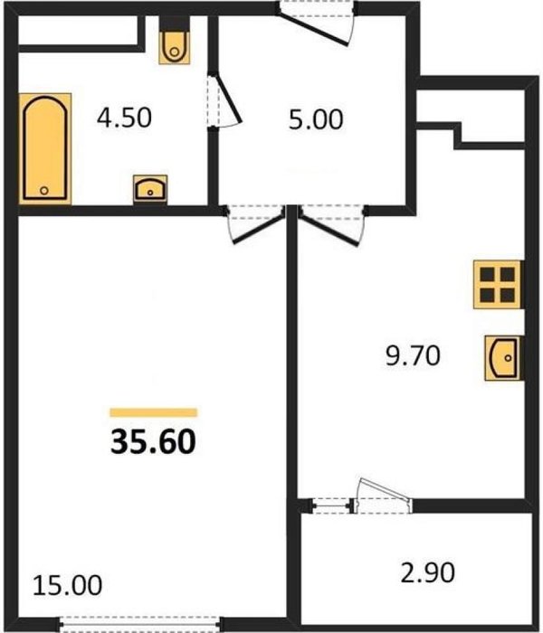 Общая площадь:35.6 м2