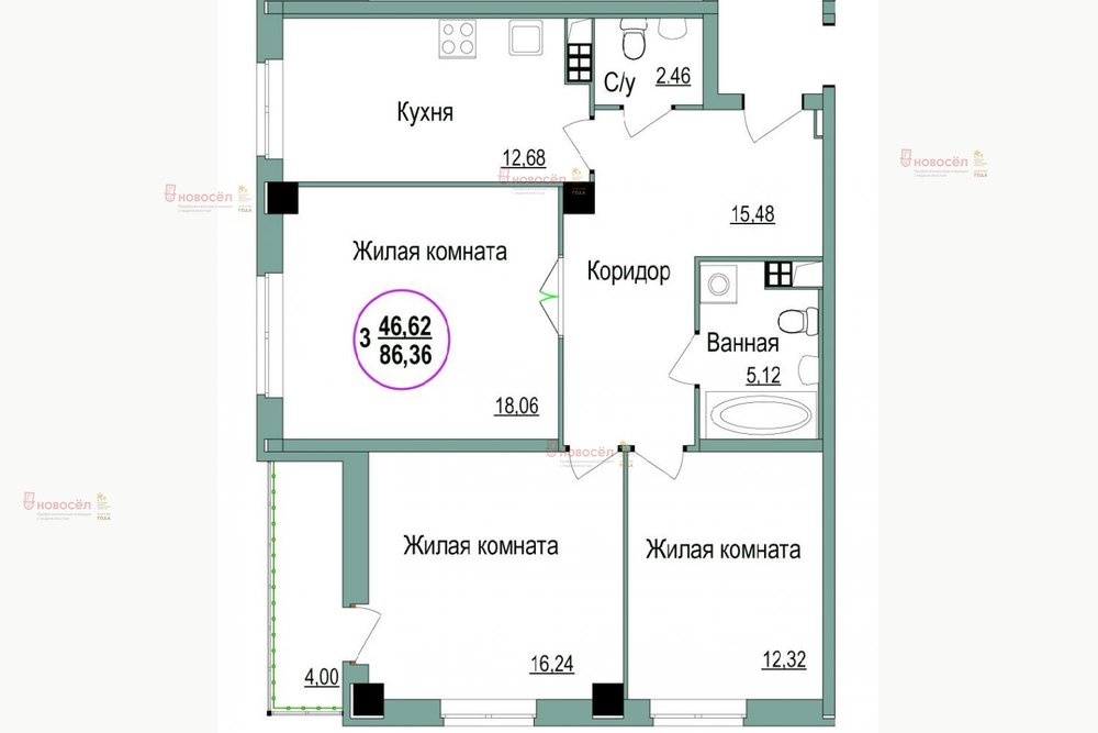 Количество комнат:3