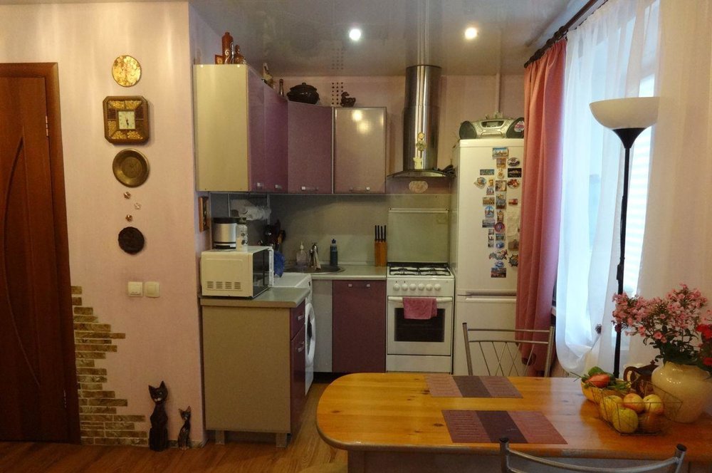 Остается новый кухонный гарнитур и встроенный шкаф.