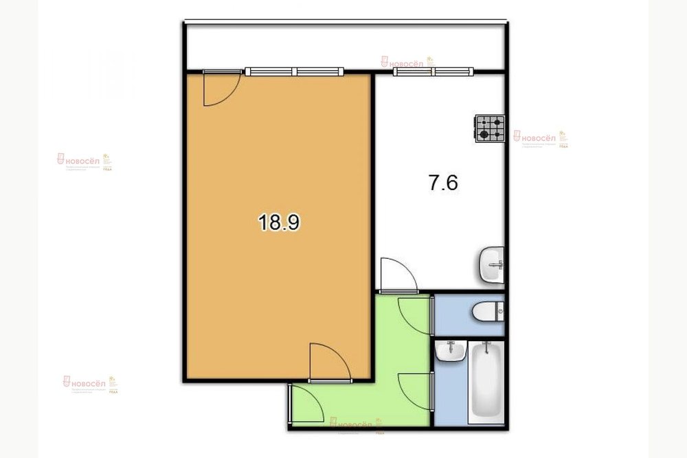 Общая площадь:33 м2