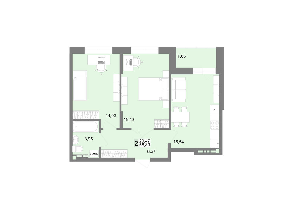 - 2 к.: 67.90 м2 – 8 100 000 ₽