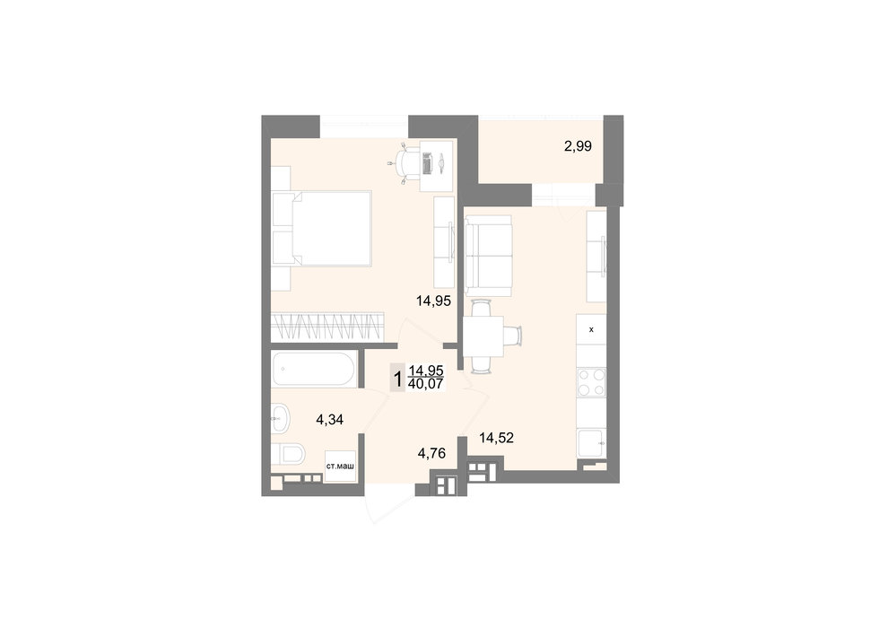 г. Верхняя Пышма, г. Верхняя Пышма, ул. Октябрьская, 5, Жилой комплекс «Юность», 4 очередь - фото квартиры 30 сентября 2020 90 дн. 1 42 9/20 2 786 550