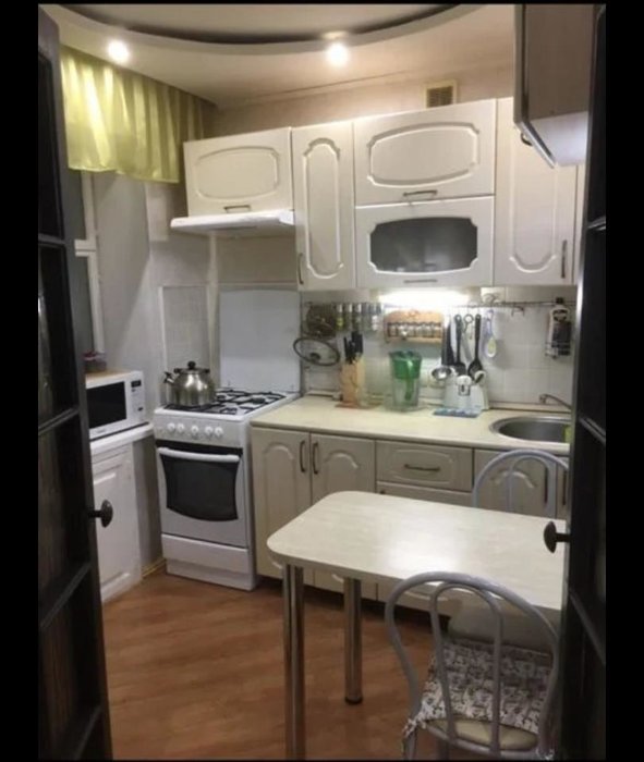 В квартире остаётся большой встроенный шкаф-купе, кухонный гарнитур, остальное по предварительной договоренности.