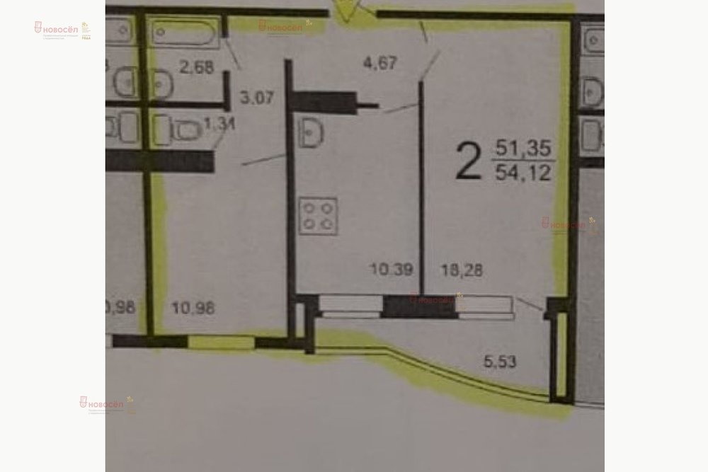 Общая площадь:51 м2
