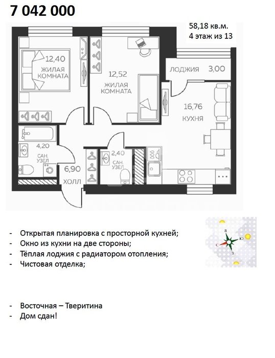 В продаже есть однокомнатные и двухкомнатные квартиры разной планировки, а так же три варианта отделки: