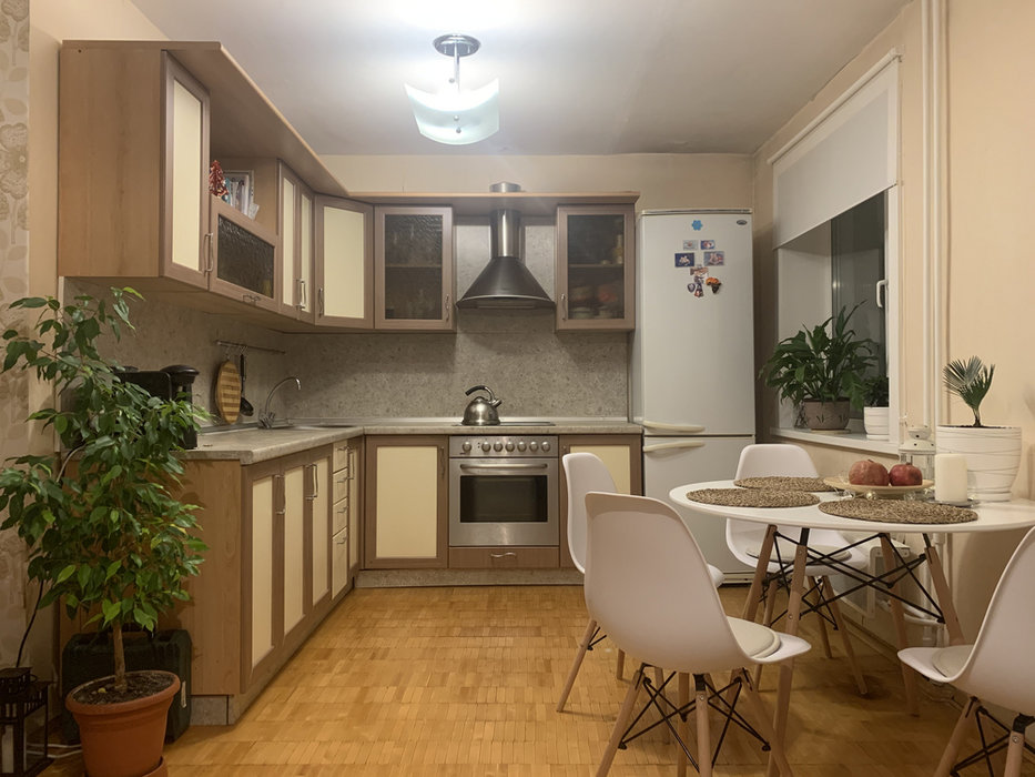 Хорошее состояние. Окна квартиры выходят на сквер. В квартире установлены стеклопакеты, натяжные потолки, ламинат. Остается кухонный гарнитур и шкаф–купе в прихожей. В шаговой доступности - остановки транспорта, магазины, детский сад, школы, аптеки и т.д. Торг обсуждается.